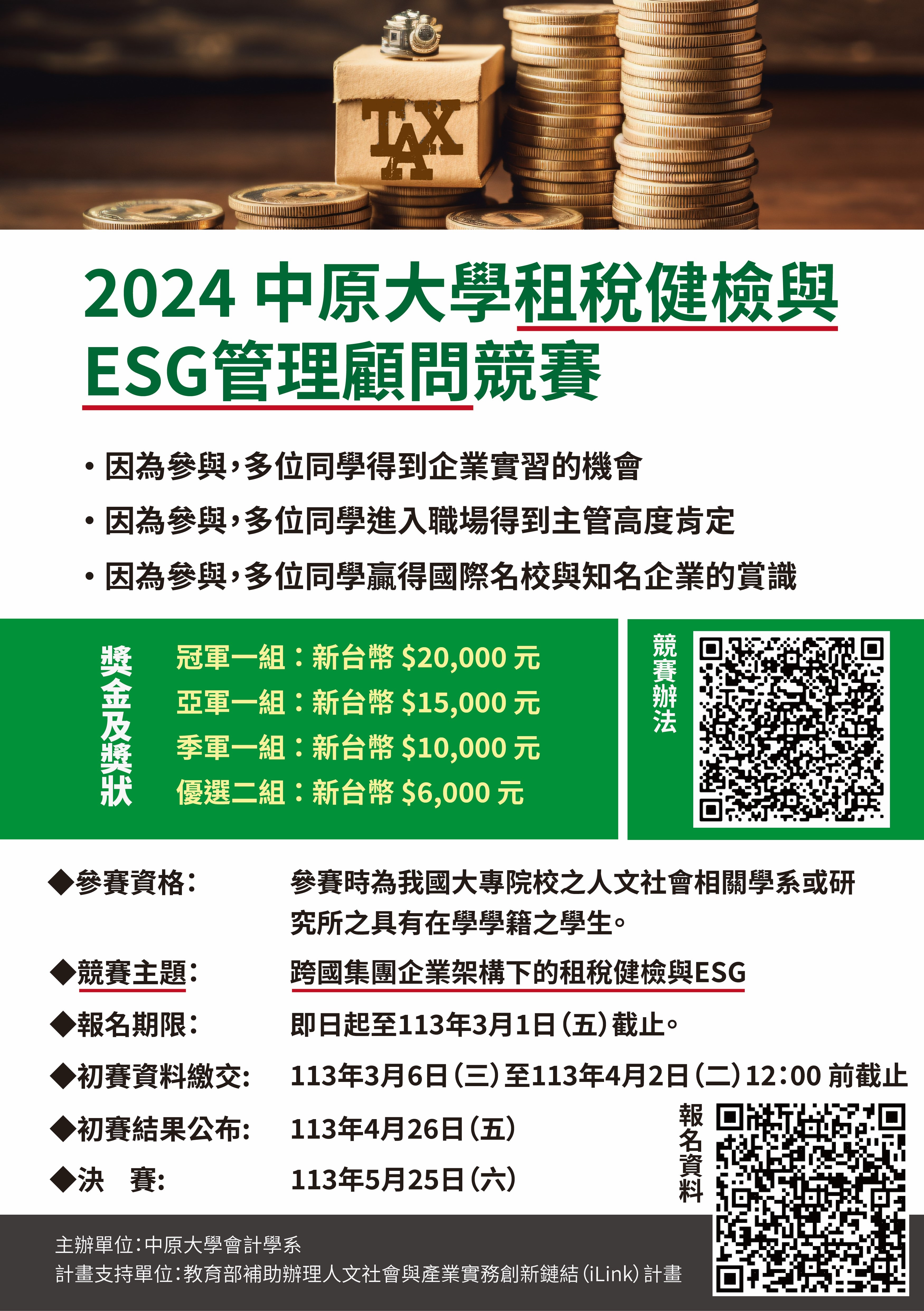 主旨:檢送本校會計學系辦理「2024中原大學租稅健檢與ESG