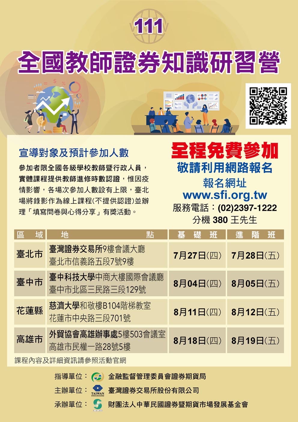 主旨:檢送111年「全國教師證券知識研習營」活動訊息,敬請協助宣傳,並歡迎貴校教職員同仁踴躍報名參加。
